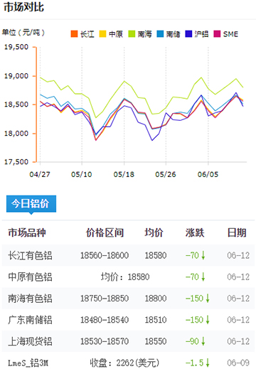 鋁錠價格今日鋁價2023-06-12